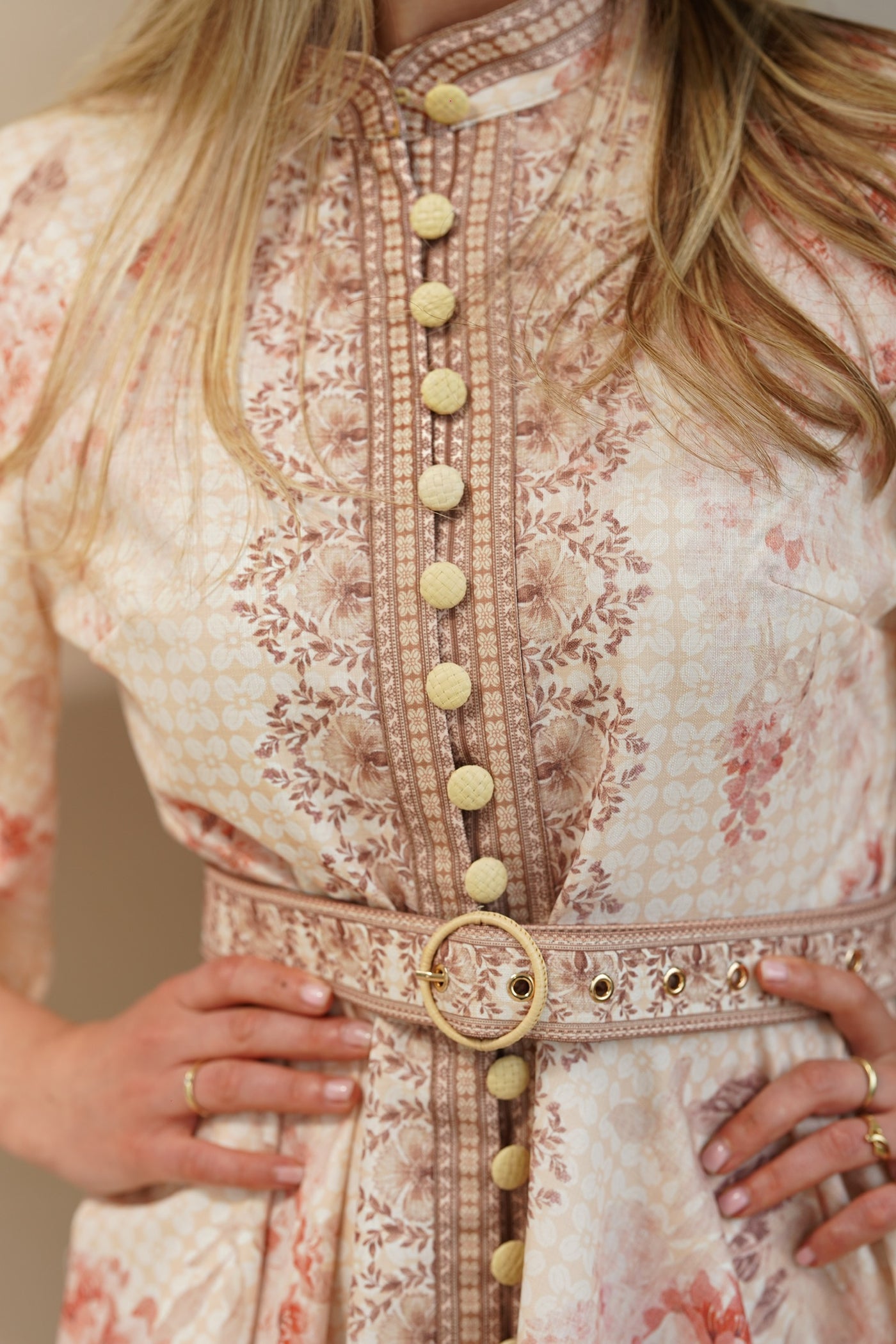 SEREPHINA is an elegant statement piece with a romantic touch. The sophisticated mix of a structured silhouette, delicate pattern, and decorative buttons makes this dress a true highlight—perfect for special occasions or stylish everyday looks.