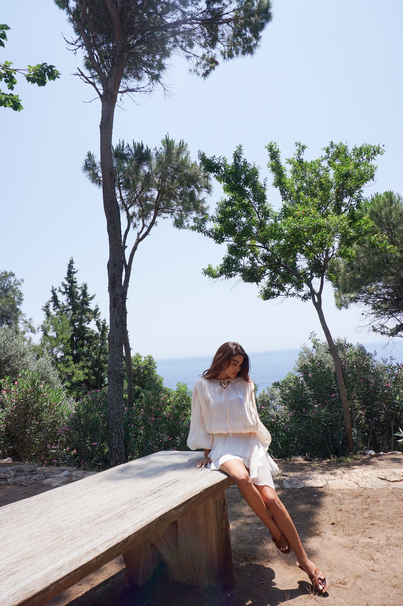 Wie ein Windhauch in der Sommersonne – Elle ist mehr als ein Kleid, es ist ein Gefühl. Es umhüllt dich mit Leichtigkeit und erinnert daran, dass wahre Schönheit in der Sanftheit liegt. Die fließenden Linien und die verspielten Volants tanzen mit jedem Schritt und lassen dich strahlen – feminin, frei und voller Anmut. Dieses Kleid verkörpert Leichtigkeit und innere Stärke, wie eine Muse, die sich zwischen Meer und Blüten bewegt.
